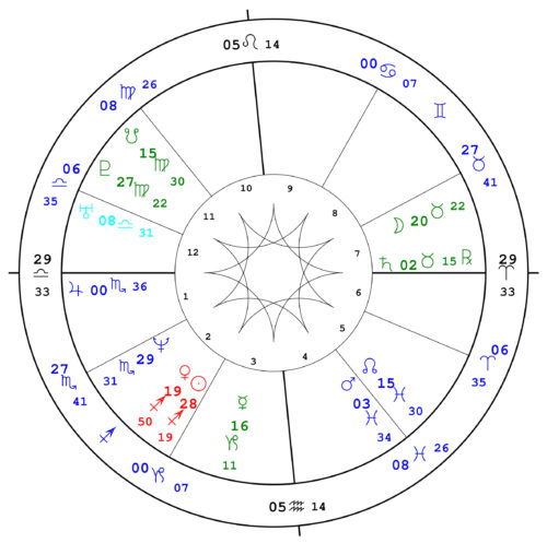 The color Dial charts are intended for use with 90 degree and 360 degree dials. Our laminated dials 90 degree or 360 degree dials are sized to fit them, or it is possible to obtain plastic or metal dials from other sources. Dials are special tools used for Uranian Astrology and Cosmobiology. They enable seeing all hard aspects (conjunction, semi-square, square, sesquiquadrate, opposition) at a glance and also make it very easy to see midpoints. A dial is attached to a dial chart (such as our dial charts that are sized to fit them) or to a blank sheet of paper with a thumb tack through the center. A tie tack or small piece of eraser can be placed on the tack point to hold the dial in place. The dial is then turned to point to whatever planet, point or midpoint one wishes to examine. In the Uranian system, midpoints are considered very important. For further information: Maria Kay Simms’ book, Dial Detective, is an illustrated guide to learning the basics of Uranian Astrology and how to work with dials.